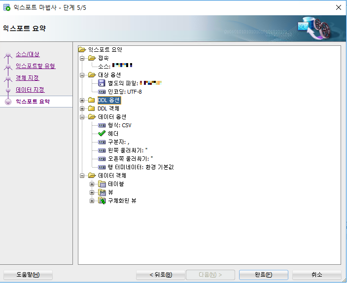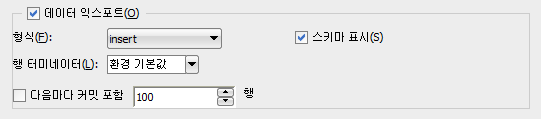- 단일 파일 : Export 데이터를 하나의 파일로 만들어 준다. 형식이 Insert일 경우에만 사용 가능하다.
