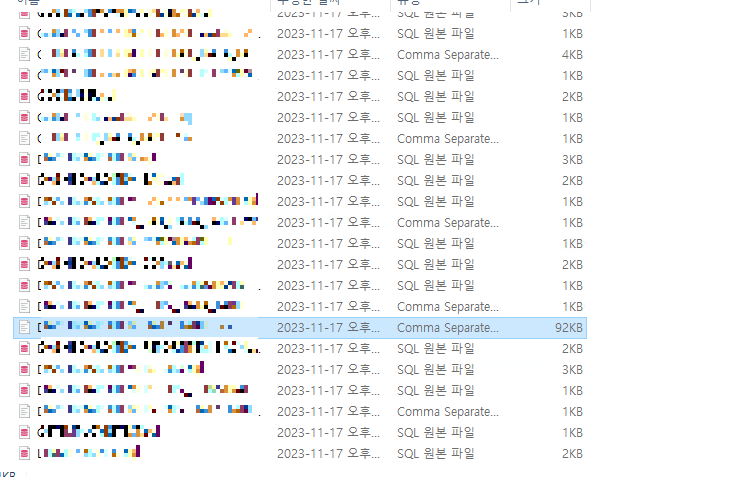 내 경우엔 파일로 떨어뜨리게 해두었으므로 아까 지정한 위치로 가보면 .sql 파일과 .csv 형태로 파일이 있는 것을 확인 할 수 있었다.