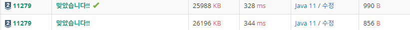 추가적으로 바로 밑에 최소 힙을 구하는 문제도 있는데 위 코드에서 앞서 설명한 우선순위 조건만 바꿔주면 된다.