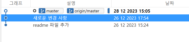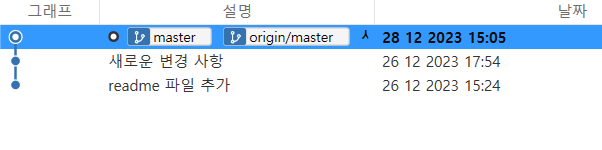 보면 아까와는 다르게 origin/master가 새로운 변경사항에서 위로 올라온 것을 확인할 수 있다.