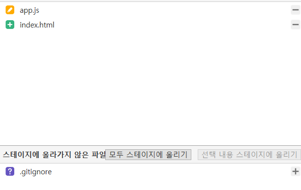 그럼 수정된 파일들을 Add 하기 위하여 우측의 + 버튼을 눌러지면 스테이지로 올라가게 된다.