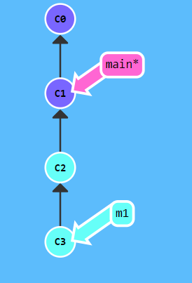 C1까지는 main으로 작업을 하였고 C2, C3는 m1 Branch에서 작업한 상태이다.
